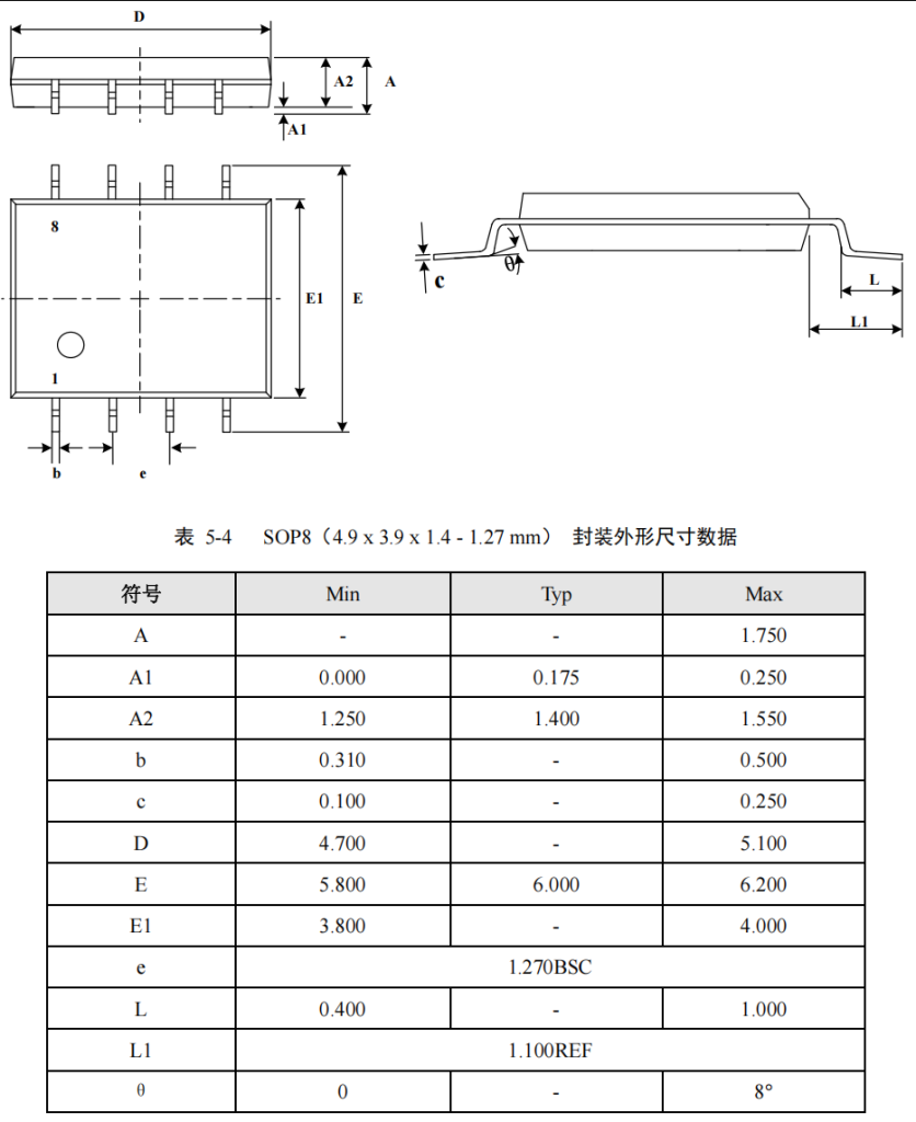 封装信息:SOP8(4.9 x 3.9 x 1.4 – 1.27mm)