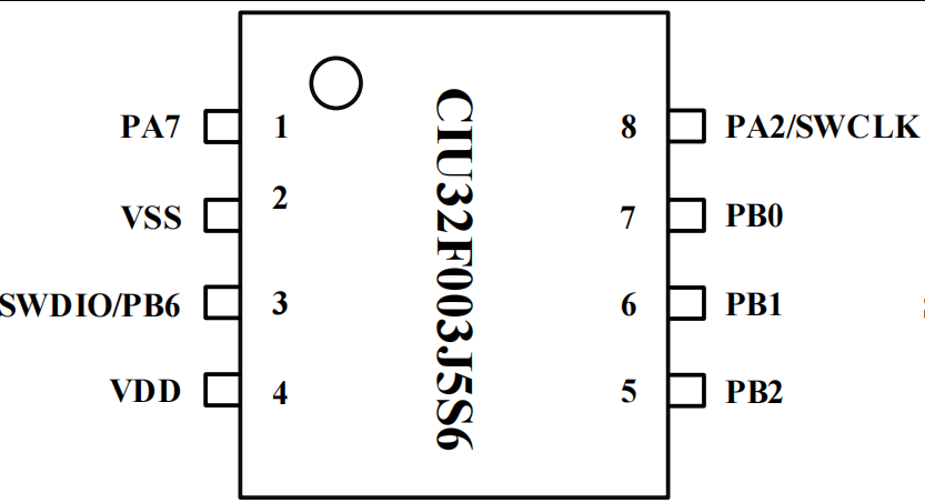 引脚分配:CIU32F003J5S6-SOP8