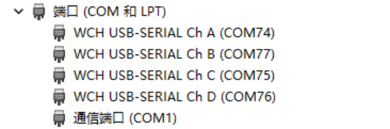 此时可以看见usb驱动激活后,可以看见usb端口,其中A和C为下载功能口,B为AT功能端口。